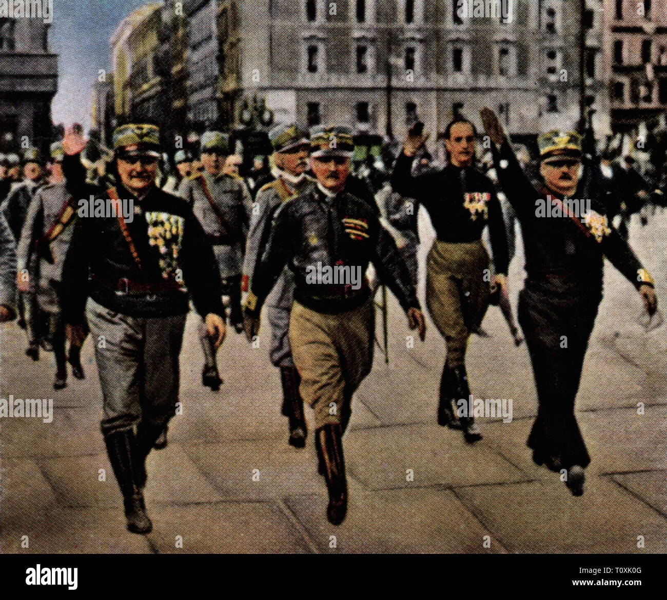 March Of The Fascists On Rome 27 10 31 10 1922 Coloured Photograph Cigarette Card Series Die Nachkriegszeit 1935 Marcia Su Roma Politics Policy Coming Inpower Seizure Of Power Putsch Coup Revolt Fascism Kingdom